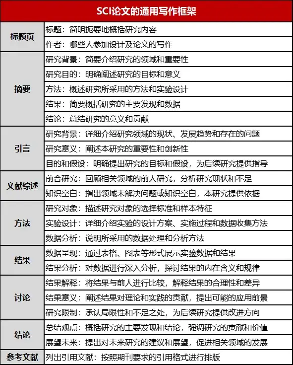 最后,学姐再给同学们分享一个SCI论文的通用写作框架,希望对大家有所帮助~